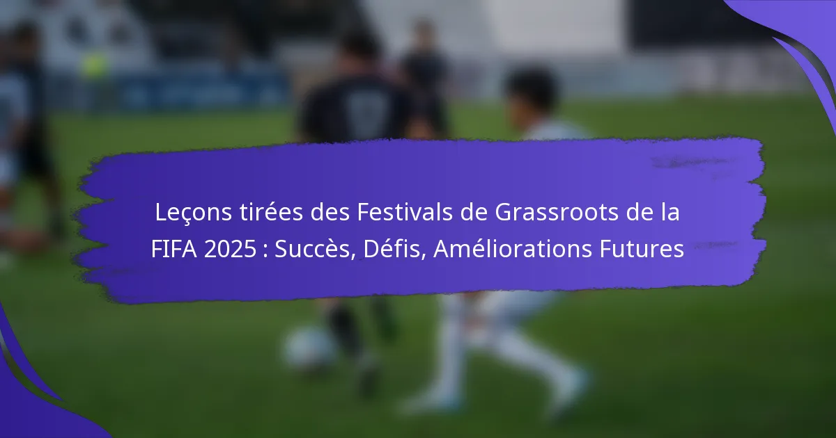 Comment les futurs Festivals Grassroots de la FIFA peuvent-ils s’améliorer sur la base des leçons de 2025 ?