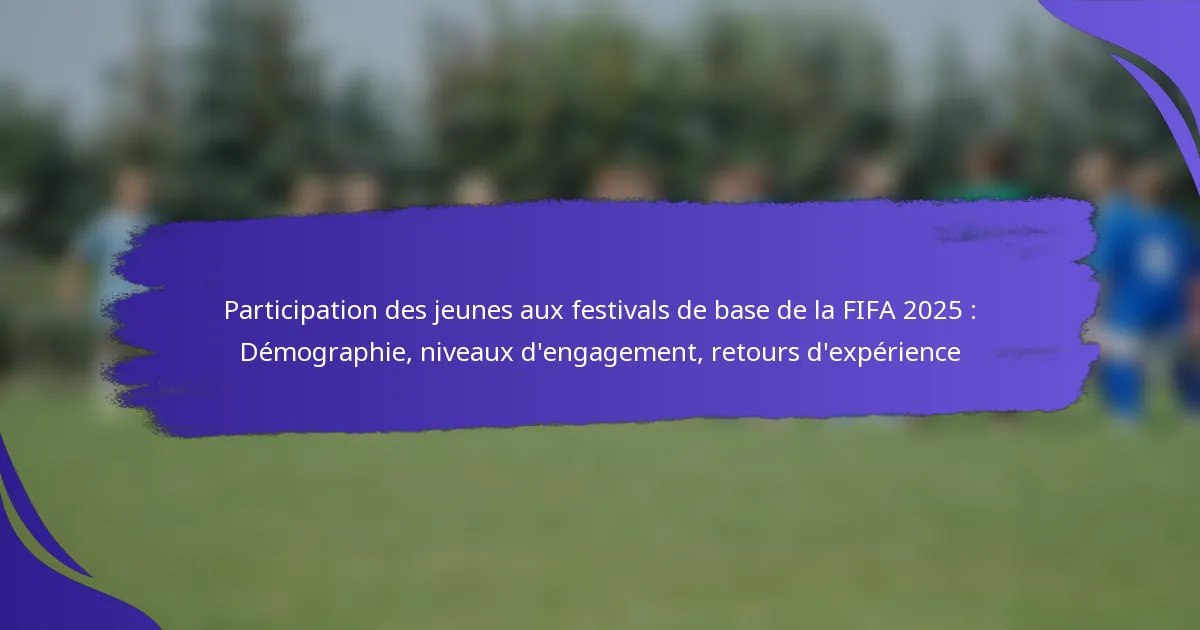 Les enquêtes auprès des participants des Festivals Grassroots FIFA 2025 révèlent une satisfaction globale élevée et un fort engagement dans les activités. Les thèmes clés des retours mettent en lumière des domaines à améliorer et suggèrent une démographie diversifiée des participants.